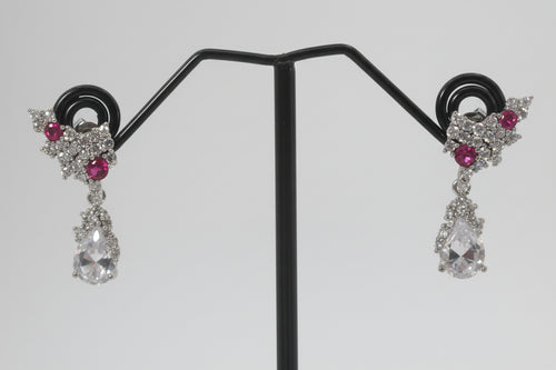 925 Sterling Silver Earrings with Hot Pink Cubic Stone Pendant