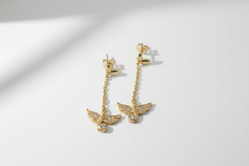 925 Sterling Silver Gold Plated Angel Wing Chain Drop Earrings